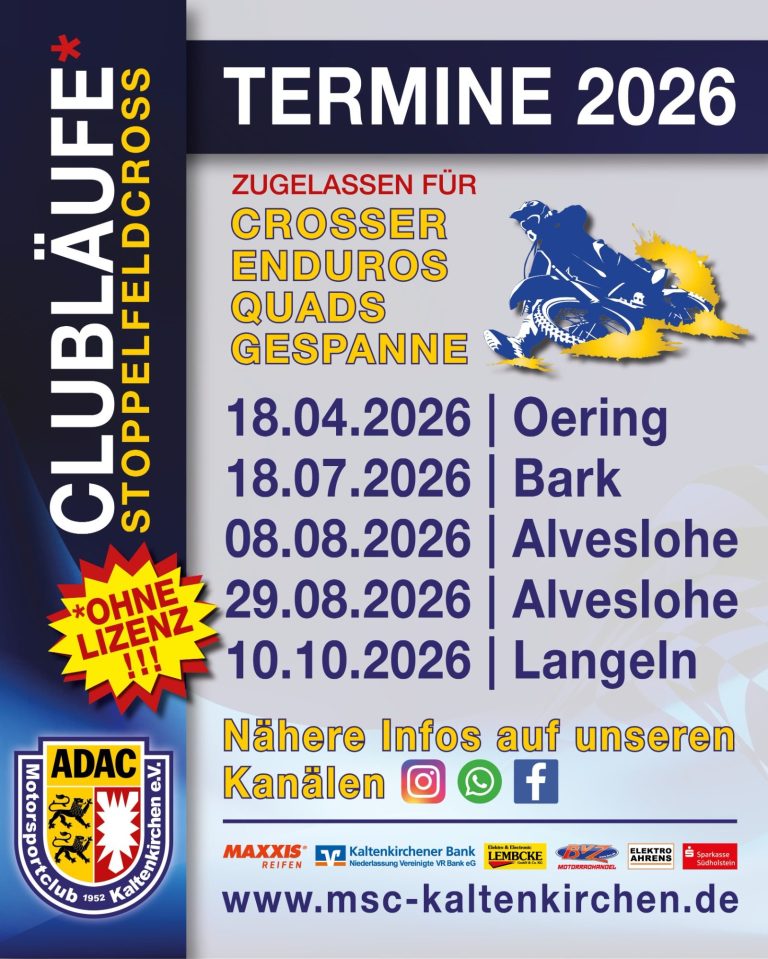 2026 soll das Jahr der Clubsportler werden, deshalb veranstaltet der MSC in 2026 keinen Onkel Toms Hütte, sondern eine Clublaufserie mit geringer Schwellenhöhe. Hier kann sich jeder Hobbyfahrer ab 85ccm versuchen.